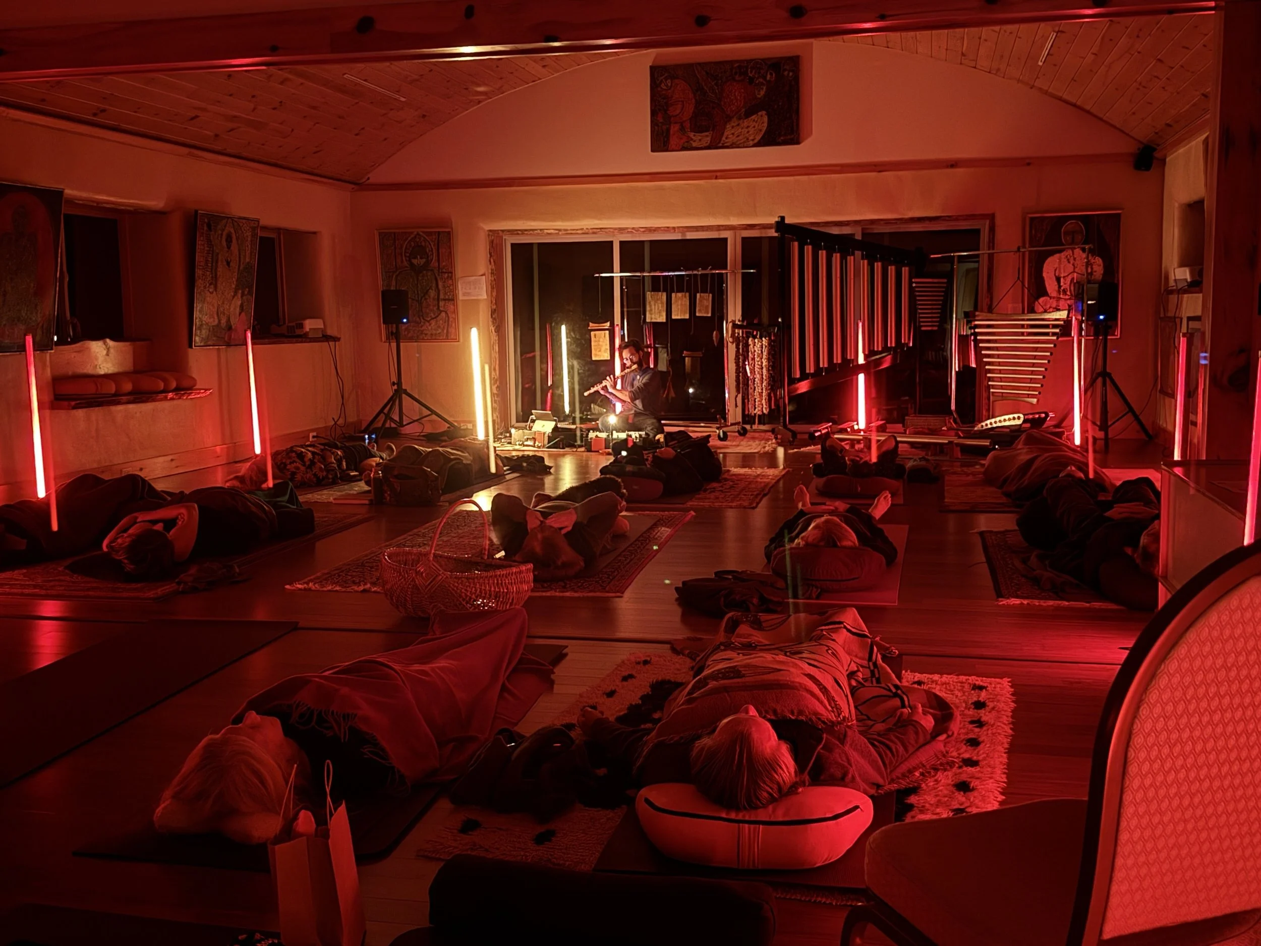 Put in-depth, The Sonorium is a purpose-built sound healing environment—a spatial instrument designed for deep listening, vibrational immersion, and subtle realignment. Rather than a single instrument, the Sonorium is an acoustically refined collection of instruments and an energetically intentional space in which sound, silence, tuning, and geometry act together on the body, mind, and more subtle energetic layers of being.